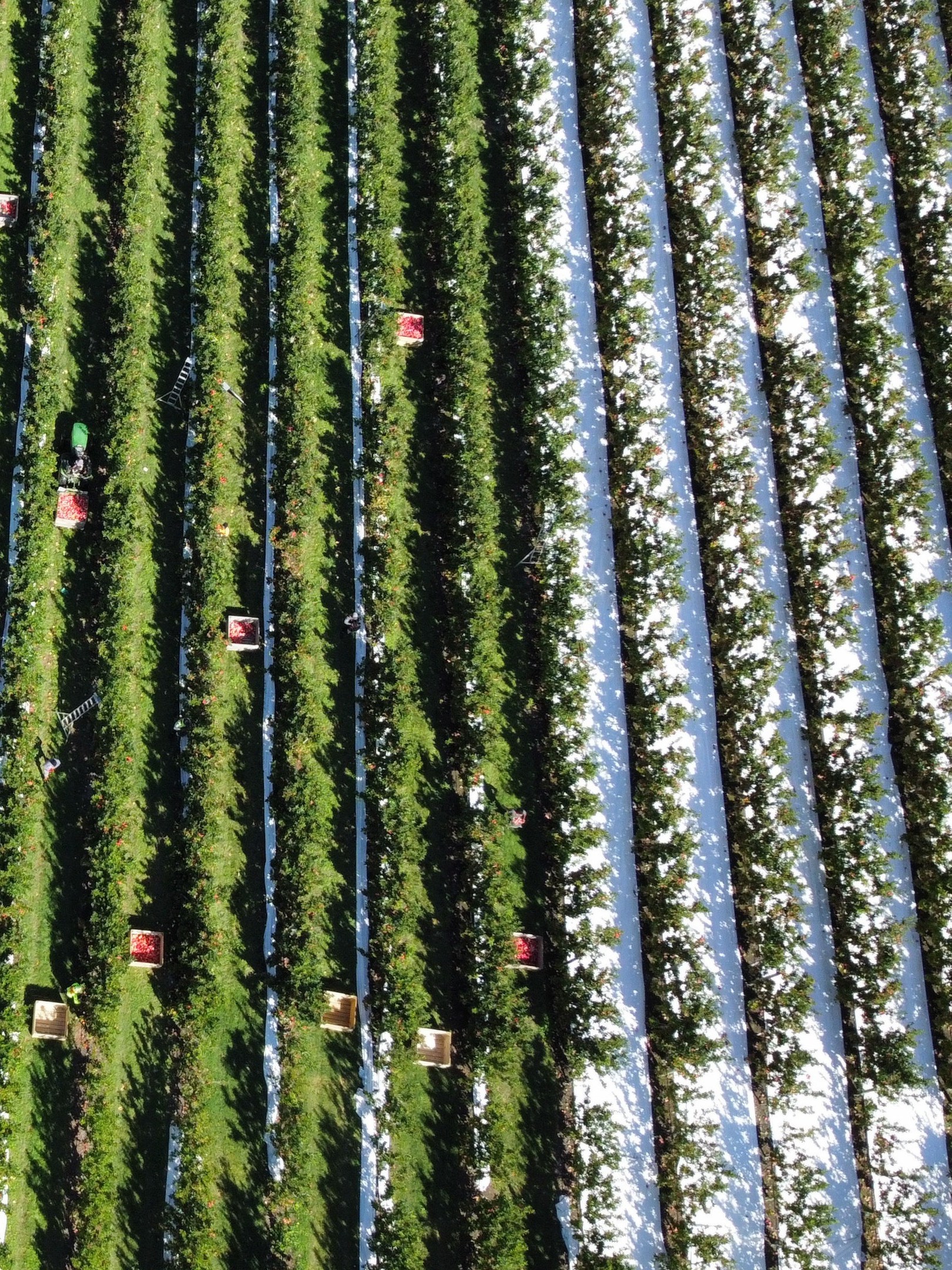 With a birds eye view of a Yummy orchard, you can see rows and rows of satisfyingly straight apple trees. Sometimes, on a sunny day, you might spot lines of bright white glowing in-between the trees. This isn’t just a nice carpet for the orchard dwelling pukekos, this is in fact reflective ground cloth. It is a method many growers, like ourselves, employ to help our red skinned apples to colour up. We know how you love a red apple!