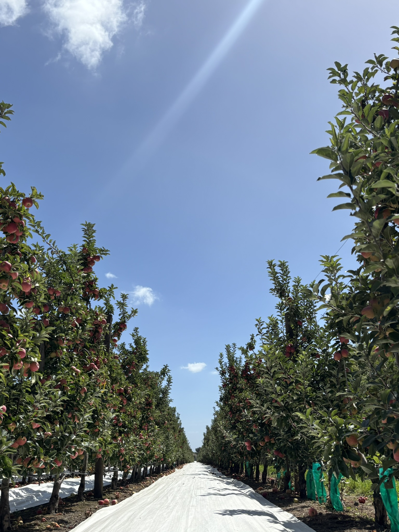 So if you ever see these alleyways of white in an orchard, you know the grower is trying to ensure not just a yummy apple, but a pretty apple too! 😊